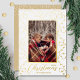 Glamourous real foil strands of Christmas lights on a white background highlight your favourite photo on these holiday greeting cards. Merry Christmas and your names on the bottom in chic silver, gold or rose gold real foil. Select High Definition for best photo quality.