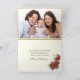 Featuring a traditional custom designed vintage image of the Baby Jesus with Angels inlaid in a gold frame. Insert your photo inside the card using our easy template. A candle with the holy rosary and poinsettias adorns the right lower side of the card. All text and fonts can be modified.
