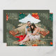 This rustic holiday card includes a Christmas tree shaped photo with a beautiful Christmas tree and ornament holiday pattern. The back is a coordinating festive solid green colour.