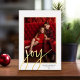 A modern look for a holiday photo card. A gold foil word - joy - is on top of the photo and holiday greeting.