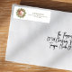 This design features a Christmas greenery foliage wreath return address label with a botanical photo circle wreath pine, a holiday simple minimalist classy, a Christmas holiday mailing supplies, a Christmas holiday sticker address label, a whimsical cute simple typography, a holiday return address sticker label, a traditional simple block style lettering, a red ribbon traditional gradient, creative unique simplistic elegance