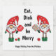 Cute Christmas pickleball Beer Bottle Label with Santa playing pickleball on white background. Eat, dink and be merry