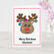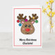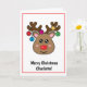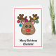 Funny Christmas pickleball folded vertical greeting card with cute Reindeer and pickleballs on white background.