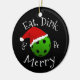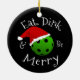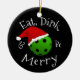 Christmas Pickleball Saying Eat Dink and Be Merry green pickle ball in Santa hat makes a great gift for pickleball players who have a sense of humour.