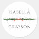 This wedding classic sticker features a watercolor Christmas pine border accented with a red charming ribbon bow. For more advanced customisation of this design, please click the BLUE DESIGN TOOL BUTTON above! Matching items are also available.