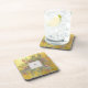 Christmas Botanical Pine Coaster. Gold Metallic image Background. Gold Monogram. Date.