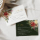 Boho Green Red Gold Christmas Pine Floral Winter Holiday Wedding RSVP Card. Bohemian Style Bouquet RSVP Card with Elegant and Simple Boho Rustic Red Floral Berry and Pine Botanicals in Hand-printed Watercolor. The Green background colour is gorgeous for boho weddings and Christmas weddings. Simple, printable RSVP Card for holiday and winter weddings.