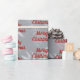 White pine twig branches on soft grey background with Merry Christmas red text.
