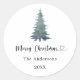 A white background, vlack text. Decorated with a watercolored green pine tree. Text: Merry Christmas. With a heart.