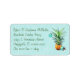 Christmas pineapple address labels. Wide labels allow for up to five lines of text. Dark green thin, printed font style over light blue graphic background. A single pineapple, decorated with an aqua blue tree ornament decorates the edge. A tiny sea star (starfish) is also part of the design. Choose this size or shipping label size.