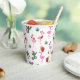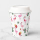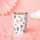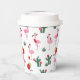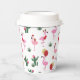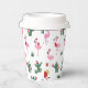 Christmas Pink Flamingo Festive Holiday Party Paper Cups Coffee Cups features a pattern of flamingos with party balloons and Christmas hats amongst flowering cactus plants. Designed by Evco Holidays www.zazzle.com/store/evcoholidays
