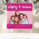 White text: Merry Christmas, written with a trendy style script. Personalise and use your own photo and names. A hot pink background.