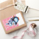 Christmas pink rectangle sticker Penguin skater.