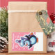 Christmas pink rectangular sticker Penguin skater and other Snowfolk.