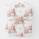 Lovely Christmas wrapping paper with pink little snow girl, poinsettia and pine twig.