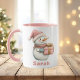 Spread holiday cheer with a Christmas Pink Snowman Holding Gift Custom Name Mug! This delightful Christmas coffee mug features a sweet snowman in a cosy pink hat and scarf, holding a beautifully wrapped holiday gift. Easily customise it with any name to create a charming and thoughtful present for friends, family, or a special someone.