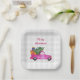 Christmas Pink Truck With Tree And Wishes Paper Plate