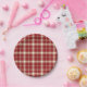 Christmas Plaid-PAPER PARTY PLATES-An allover background plaid pattern created in festive holiday colours. The main colours are red, green; gold and creamy white. There are several of these Christmas Plaid patterns that you can mix and match. They all coordinate yet no two patterns are the same. Coordinating Christmas stripes, solids and more, are available. Although they are titled for Christmas, many of them can be used anytime of year. Mix them up for a completed party theme. Choose any size of Zazzle paper plates available. Paper cups, napkins and even gift packaging to coordinate is available as well.