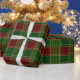Elegant classic burgundy, bordeaux, wine and green plaid tartan grid consisting of crisscrossed, horizontal and vertical bands pattern with a gold dash line grid. Farmhouse country rustic holiday pattern gift wrapping paper.