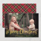 Christmas Plaid Gold Foil Script Holiday Photo Card