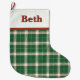 Christmas Plaid Green and White Large Christmas Stocking and customisable name on front.
