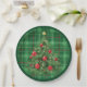 Christmas Paper Plates in Green Plaid with red with Gold Snowflakes.