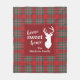 Cute home sweet home Christmas blanket you can easily customise by clicking the "Personalise" button, Featuring deer silhouette and clan MacTavish tartan in green and red chequered pattern
