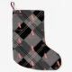 Christmas Plaid Monogram Grey Black Pink Small Christmas Stocking