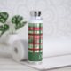 Modern christmas plaid water bottle featuring customisable name to gift all family members this holiday season. The deep greens and red colours will make their day cosy and warm.