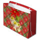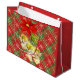 Christmas Plaid with Dancing Baby Angels hanging from a Poinsettia flower Gift Bag.