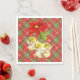 Christmas Plaid with Dancing Baby Angels hanging from a Poinsettia flower holiday party napkins.