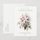 Christmas Poinsettia Berries Foliage Watercolor Holiday Postcard