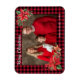 Christmas Poinsettia Buffalo Plaid Family Photo Magnet.