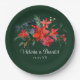 Christmas Poinsettia Elegant Floral Green Wedding Paper Plate