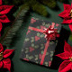 Christmas Poinsettia Flower and Mistletoe Red Berries Christmas Wrapping Paper.