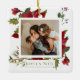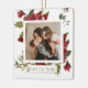 Christmas Poinsettia Joyeux Noël Holiday Personalised Photo tree ornaments from Ricaso - easy to personalise with your own details - add your own text and photo to this stunning watercolor winter foliage green, red and white modern themed ornament with a typography detail to the front and your own photo - perfect for yourself or as a wonderful holiday keepsake for friends and family - ideal to remember your first Christmas together
