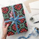 Christmas Poinsettia Nordic Floral Knit Black Red Wrapping Paper