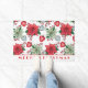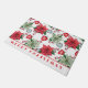 There are lovely holly berries, red and green poinsettias, and heart-shaped ornaments with snowflakes on them.