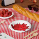Modern graphic bright red Christmas poinsettia paper bowl or plate. Original graphic design by Sarah Trett for www.mylittleeden.com