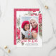 Elegant watercolor red poinsettia flowers and berries are nestled in pine and holly branches. They create a beautiful frame around your photo. Save the date is written in trendy red script. Your names and date follow below. This item is part of the Red Poinsettia Botanical Wedding Collection.