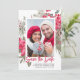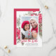 Elegant watercolor red poinsettia flowers and berries are nestled in pine and holly branches. They create a beautiful frame around your photo. Save the date is written in trendy red script. Your names and date follow below. This item is part of the Red Poinsettia Botanical Wedding Collection.