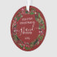 This cute and custom Christmas tree ornament is perfect for any doting grandparents. It features the phrase, "Our First Christmas as Grandparents," on top of a burgundy red poinsettia floral, holly berry, and green ivy leaf watercolor wreath on top of a simple burgundy red background on the front and a personalised photograph of your grandchild on the back. It's elegant, pretty, sweet, and special; the perfect way to celebrate your love for your grandkids.