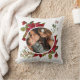 Christmas Poinsettia Joyeux Noël Photo frame personalised winter themed pillow from Ricaso - a stunning red, green and white holiday floral design with your own photograph -with red poinsettia watercolor flowers