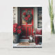 Christmas Poinsettias and Tabby Cat On Doormat Holiday Card