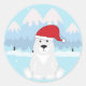 A cute Christmas sticker of a polar bear in a Santa hat sitting in the snow. Great to use for gift wrapping or on envelope seals.