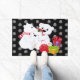 Doormat shown with a black background colour with a cute festive Christmas polar bear print.