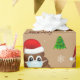 Cute happy Christmas / Santa poo emoji christmas emoji with red Santa hat and wearing covid19 mask on light brown background Christmas wrapping paper.