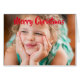 This personal greeting card features "Merry Christmas" written on the front in red font. A stock image of a cute little girl is on the front. The inside have a warm message written in red. Place your order today!