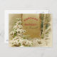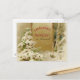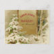 Vintage graphic illustration from Hungary 1901 .Snow covered pine trees and a yard sign saying Xmas greetings and kiss to your hand in Hungarian..
