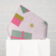 The Christmas presents pop in vibrant shades of pink and green, adding a fun and whimsical element that stands out beautifully against the soft pink backdrop. Interspersed snowflakes lend a subtle hint of winter magic, harmonising perfectly with the bright, contemporary palette. Together, these elements create a look that’s both festive and stylish.